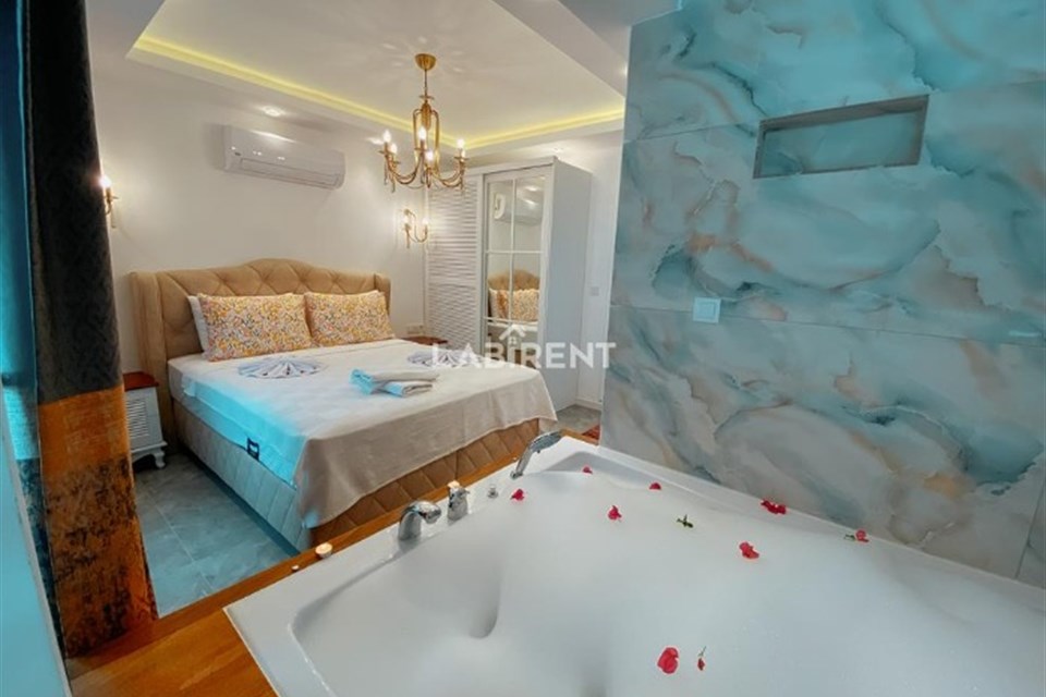 Fethiye villa kiralama gereksinimlerinize rahatlıkla cevap veren işletmemizde bütün detaylar misafirlerimizin konforu, güvenliği ve hijyeni adına düzenlenmektedir. 4 odamız ve 4 banyomuzda 8 kişi çok çok rahat konaklayabilmektedir. Bir evde bulunması istenen bütün beyaz eşyalar, mutfak gereçleri, elektronik eşyalar ve daha fazlası hazır edilmiş ve her biri en kalitelilerinden seçilmiştir. Sadece havuz değil, aynı zaman modern ve geniş bir j...